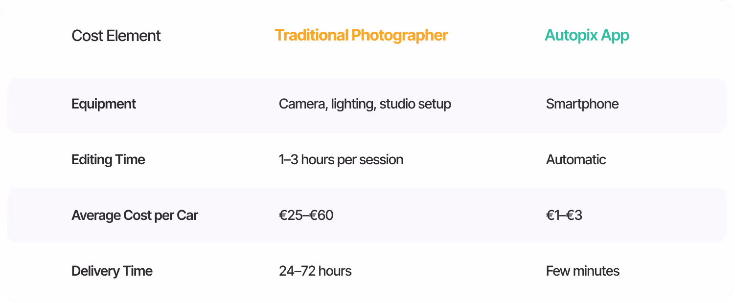 Et stadig større antall bilforhandlere oppdager en raskere og rimeligere måte å lage profesjonelle bilbilder på. I stedet for å leie fotografer eller bruke timer på redigering, bruker de nå en bilfoto-app for forhandlere som Autopix – et AI-drevet verktøy som forvandler vanlige mobilbilder til studioklare bilder på få minutter.